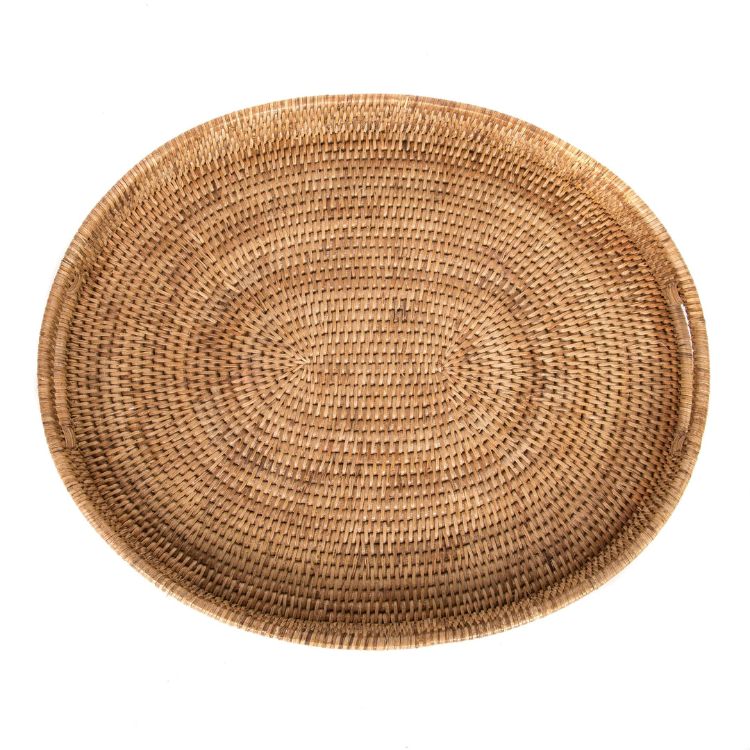 Rattan Oval Tray with Cutout Handles