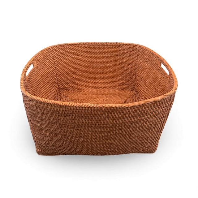 This remarkable basket has been artisan-crafted of rattan for a natural fresh coastal look. It's sized for any number of tasks, from living room to bath, from guest room to closet. But this hand-woven storage basket is too pretty to hide. Graceful built-in handles make it easy to move and display.