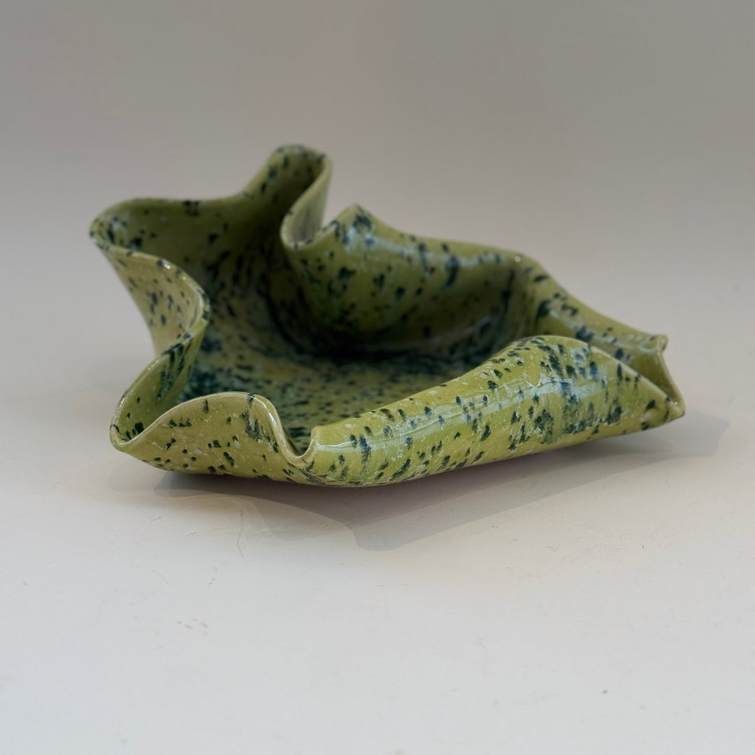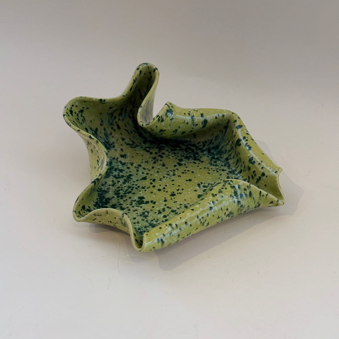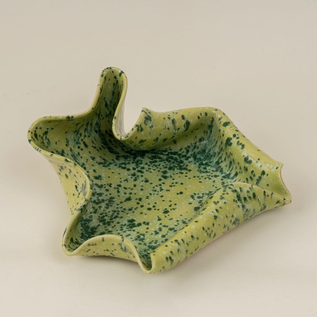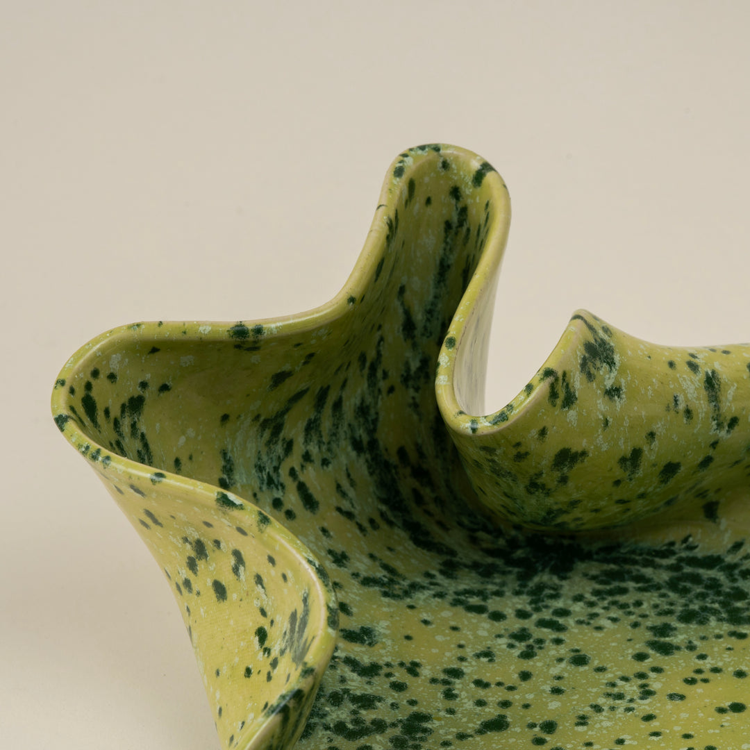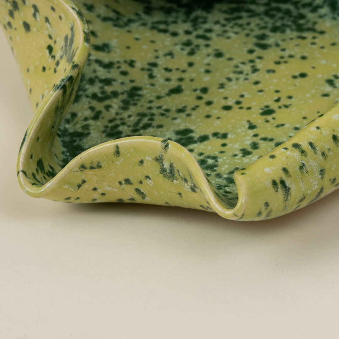 Handmade Ceramic Wave Tray in a Lime Shower Speckled Finish