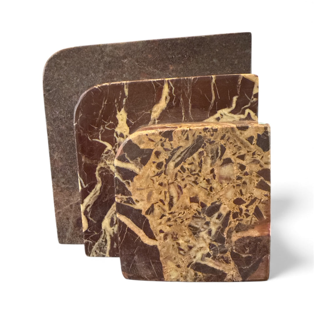 Rosso Levanto marble commands attention in this striking Art Deco bookend pair. Each piece is substantial enough to anchor substantial volumes while serving as a sculptural accent. Perfect for collectors who understand that functional design need not compromise on visual impact.