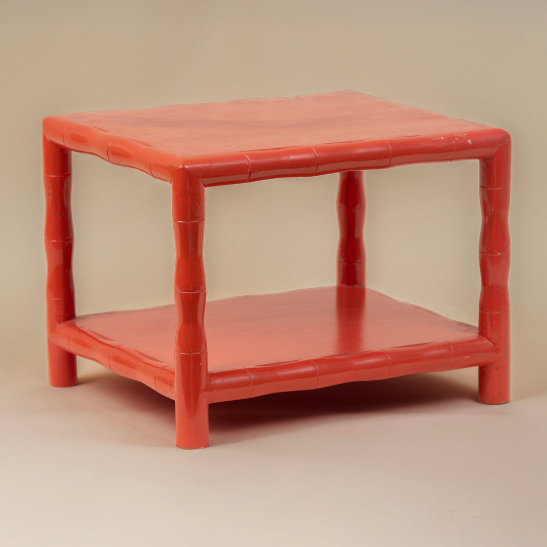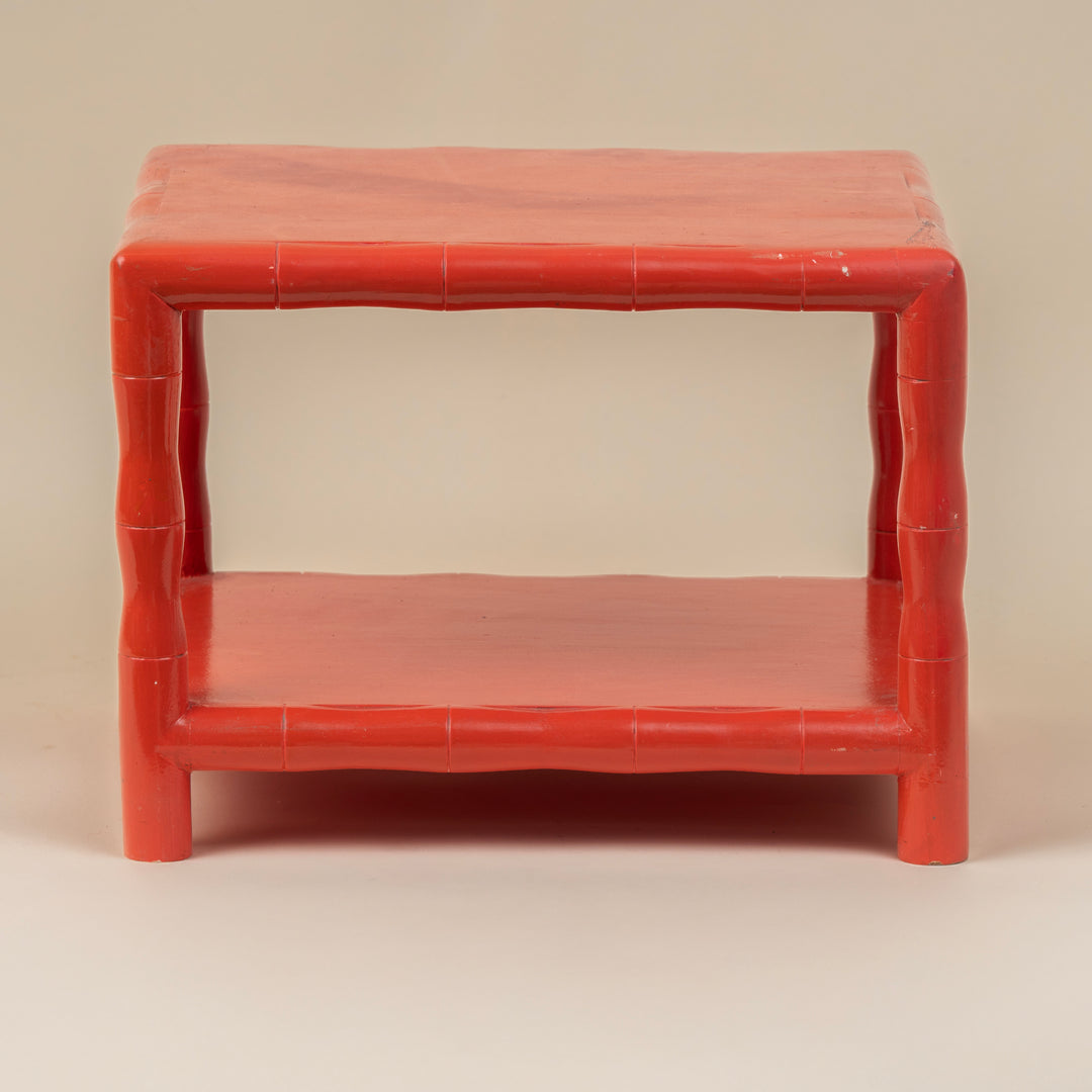 1970's Coral Bamboo Telephone Table With Shelf