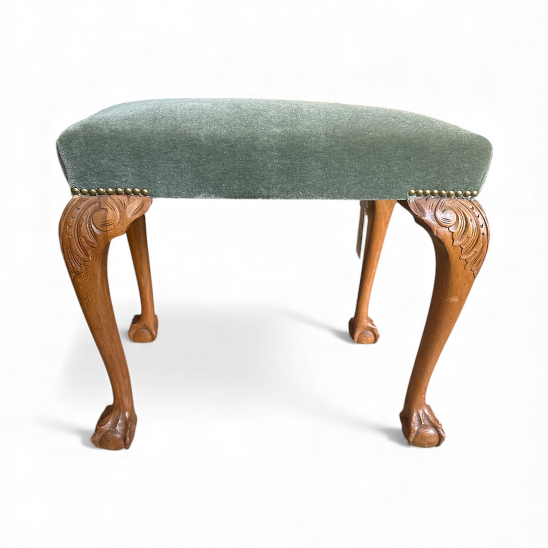 Tall Cabriole Leg Stool, Newly Upholstered in Seafoam Velvet, England