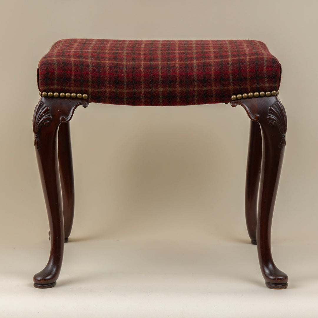 Stool with Queen Anne Legs, Newly Upholstered in Red Plaid Wool, England